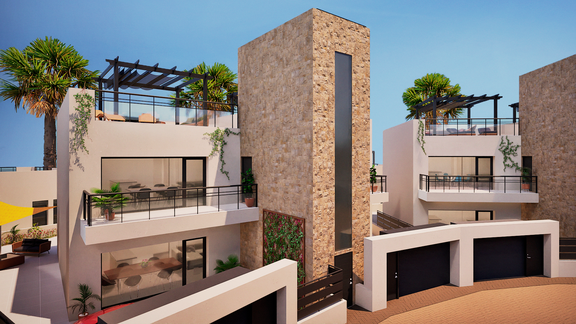 A new development of different styles of properties,these duplex have two bedrooms and two bathrooms and there is on option between a ground floor with garden or a top floor with a large solarium. This promotion is located in a quiet Spanish village which is close to the fabulous beaches and coast line of Mazarron.